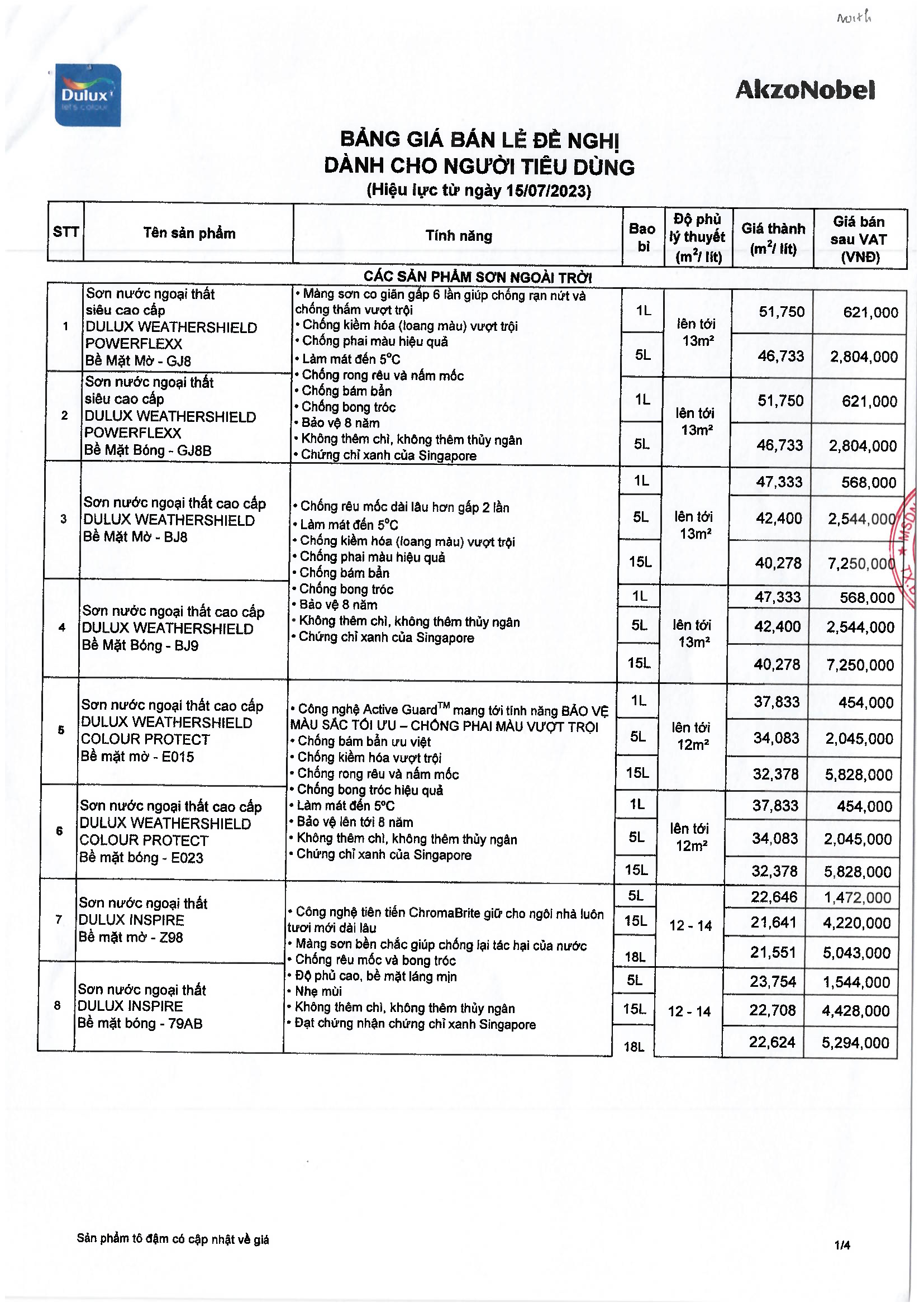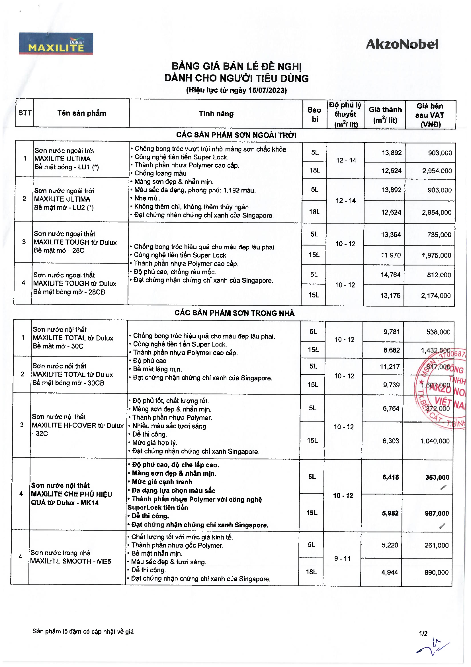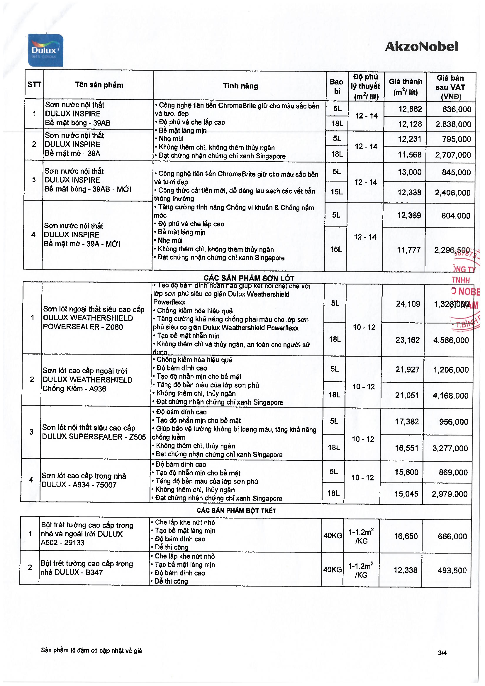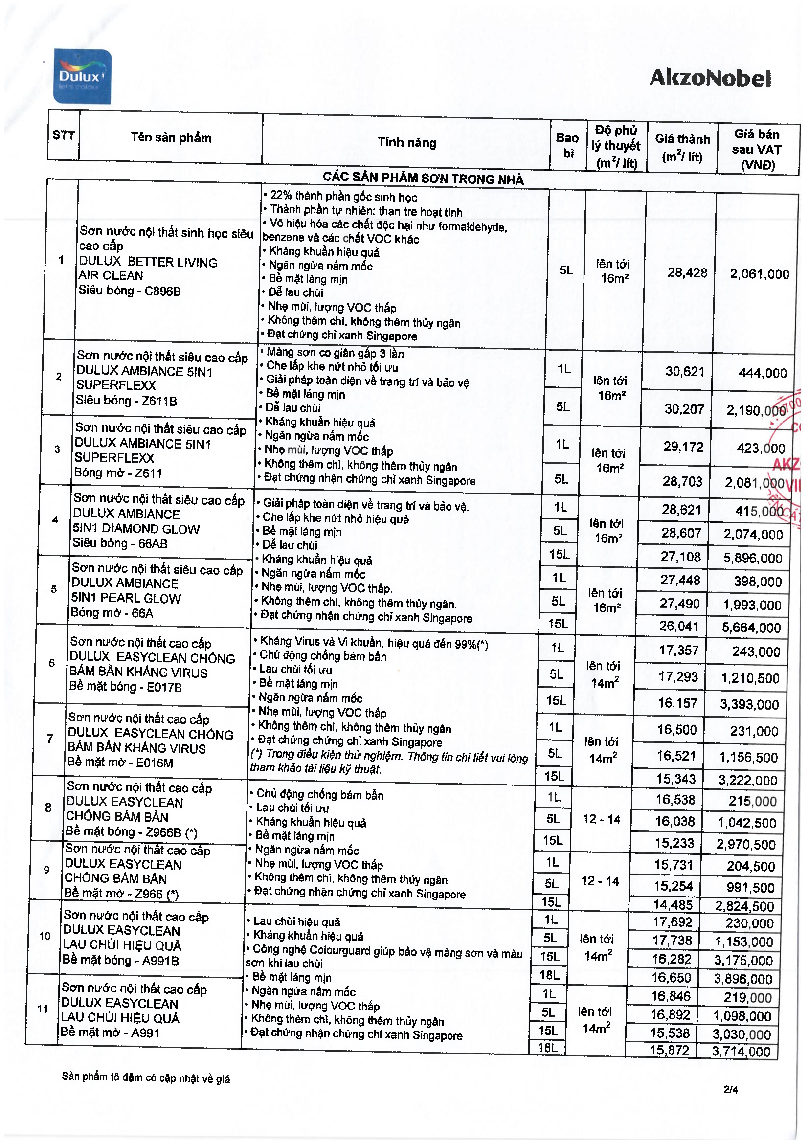Danh mục tin BẢNG GIÁ BẢNG MÀU Bảng màu Dulux Bảng màu Nippon Bảng màu Jotun Bảng màu Kova TIN TỨC Tin tức nổi bậtBẢNG GIÁ TRỌN GÓI SƠN DULUXSáng tạo không gian sống theo phong cách riêngVì sao bạn nên sơn lại nhàPHỐI MÀU SƠN PHÒNG KHÁCH CỦA DULUX.10 ĐIỀU CẦN BIẾT KHI TIẾN HÀNH SƠN NỘI THẤTBẢNG GIÁ TRỌN GÓI SƠN NIPPON5 CÁCH PHỐI MÀU SƠN ĐẸP VÀ HIỆN ĐẠIChọn màu sơn nhà cho người mệnh MộcGợi ý chọn màu sơn cho phòng trẻ emPHƯƠNG PHÁP NHẬN BIẾT SẢN PHẨM DULUX VÀ MAXILITE CHÍNH HÃNGBẢNG GIÁ DULUX 2023 , Ngày đăng : 10:11:25 18-03-2021